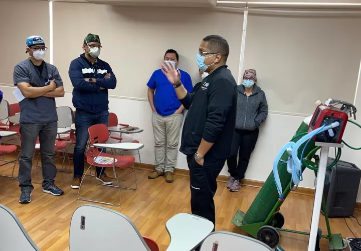 La capacitación se realizó en una modalidad mixta, con módulos virtuales y participación presencial en sesiones prácticas, dirigidas por los doctores Julio Sandoval y Eduardo Prado, reconocidos expertos panameños en materia de medicina de cuidados intensivos.