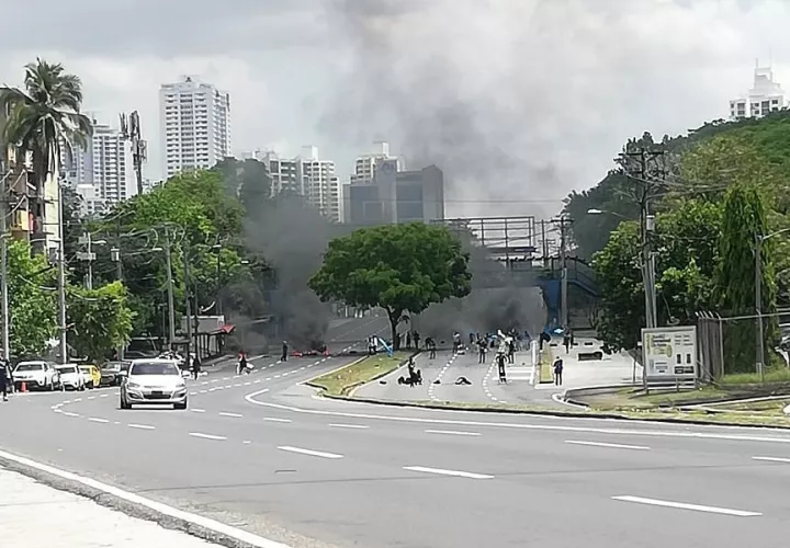 Quema de llantas, humo negro y cierre de calles, es el escenario que se observó en vía Transístmica, a la altura de la Universidad de Panamá.