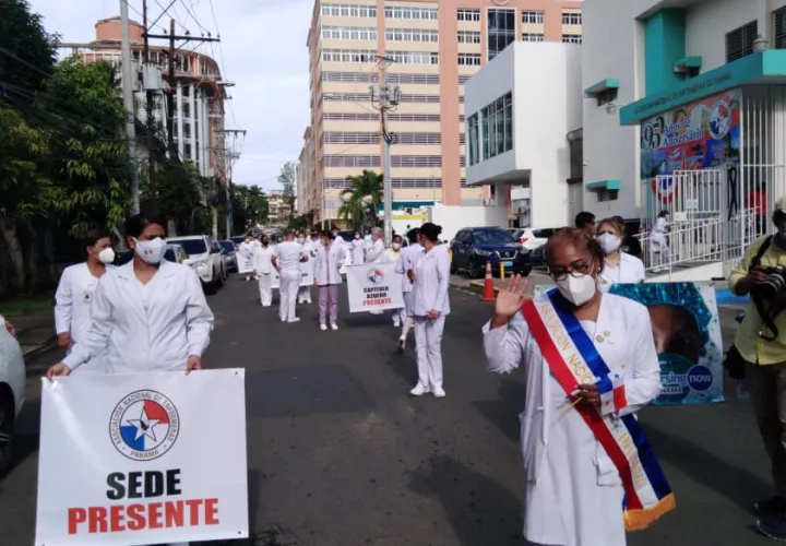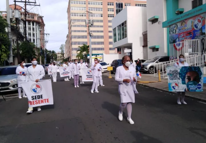 Un grupo de enfermeras marchar hoy, miércoles, hacia la Presidencia de la República, ubicada en San Felipe.