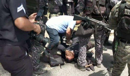 Los agentes antidisturbios intentan acceder al edificio en construcción del nuevo Hospital Santo Tomás. Sin embargo, desde los pisos superiores, los obreros les lanzan piedras, bloques , varillas e incluso una carretilla.