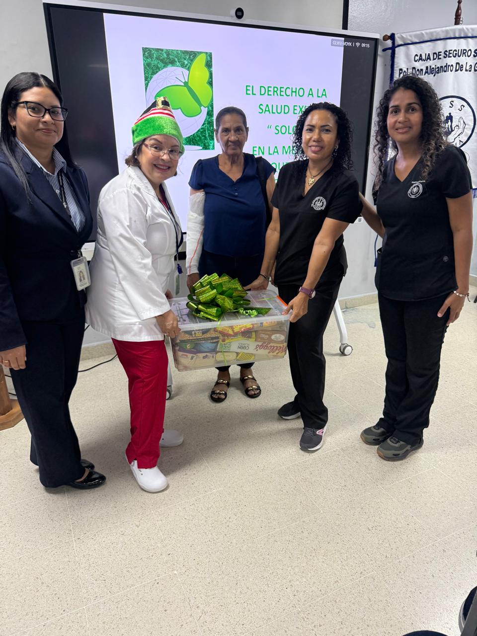 Pero la jornada no se quedó solo en alegría visual. Quince canastas de alimentos fueron entregadas a pacientes asegurados, pertenecientes a programas como SADI, pensionados por invalidez, usuarios de la Clínica de Heridas y adultos mayores de la Tercera Edad, llevando un alivio real a hogares donde cada ayuda cuenta.