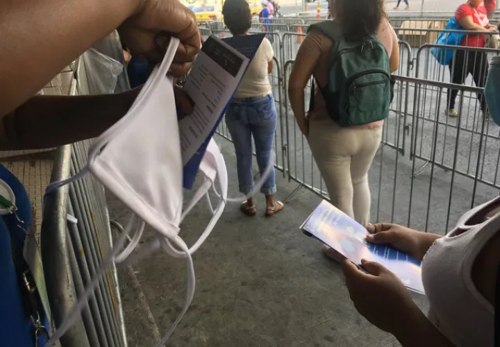 Funcionarios del Ministerio de Salud de la región de San Miguelito distribuyeron mascarillas de telas para las personas que se movilizaban por el área comercial de la Gran Estación.