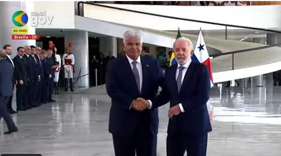 Brasilia, 28 de agosto de 2025. El presidente de Panamá, José Raúl Mulino, llegó este miércoles a Brasilia para iniciar su visita oficial, donde fue recibido en ceremonia oficial en el Palacio de Planalto por el mandatario brasileño, Luiz Inácio Lula da Silva.