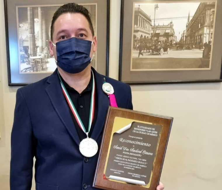 Durante esta visita de reconocimiento, Sandoval entregó a México su última obra “Doscientas Inspiraciones Bajo un Sol en Cuarentena” para la Biblioteca de Bellas Artes y algunos ejemplares al Colegiado de Escritores y de las Artes para que sean de apropiado uso para nuevos literatos mexicanos.