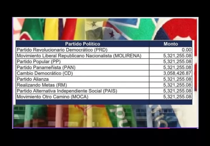 El PRD tiene asignado un financiamiento público preelectoral de B/.15,963,765.24. Por su parte, CD recibiría B/.12,905,338.37 en financiamiento público.