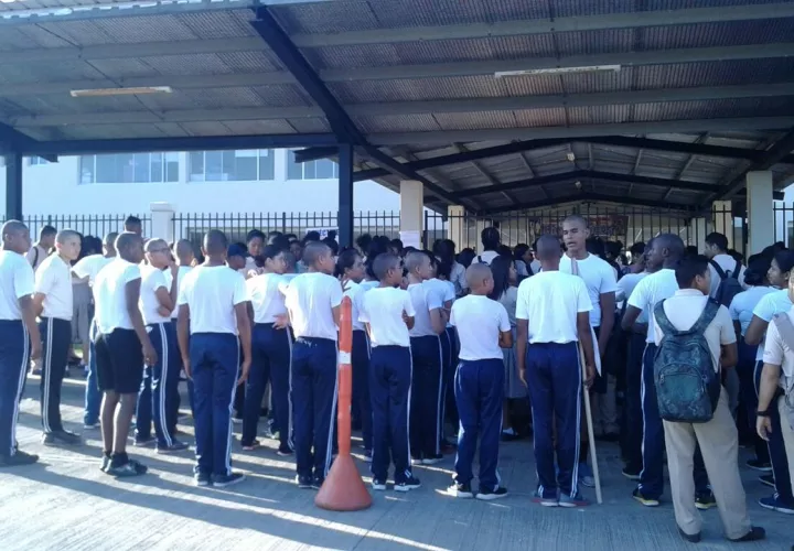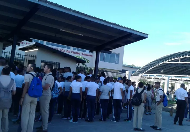 Un grupo de estudiantes de la escuela República de China-Taiwán, ubicada en el corregimiento de Pacora, protestan hoy, jueves, por las malas condiciones del plantel.