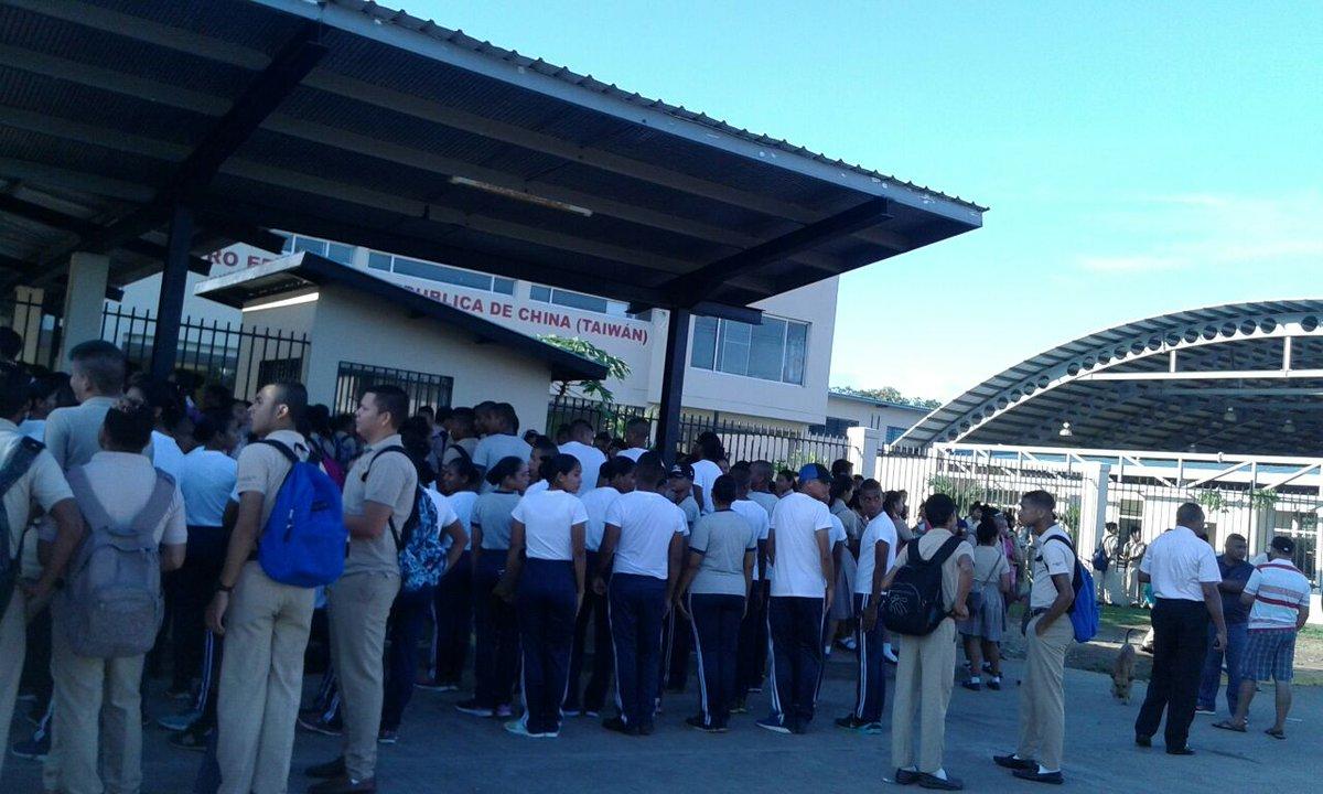 Un grupo de estudiantes de la escuela República de China-Taiwán, ubicada en el corregimiento de Pacora, protestan hoy, jueves, por las malas condiciones del plantel.