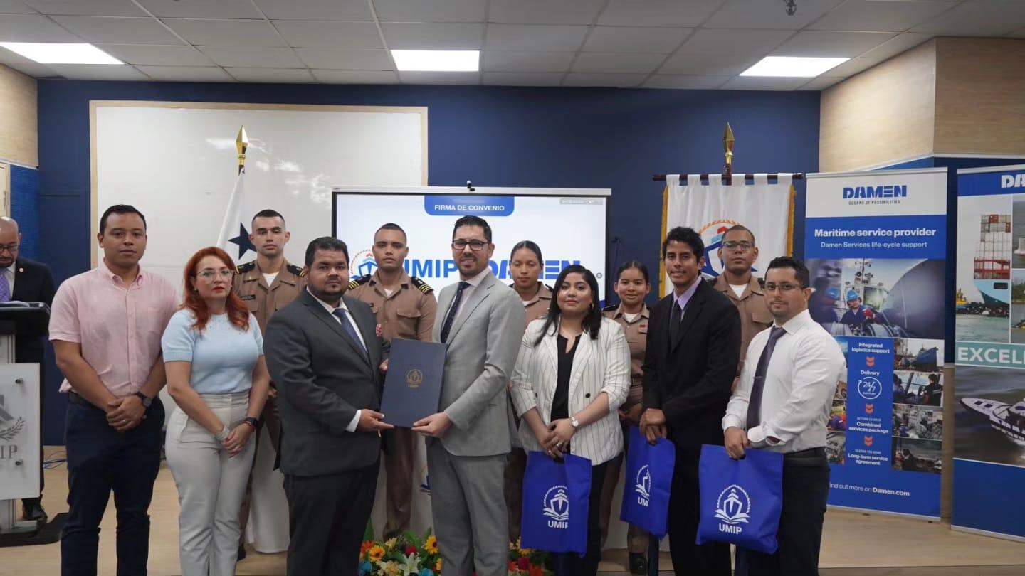 La Universidad Marítima Internacional de Panamá (UMIP) y la empresa Damen Shipyards firmaron un importante convenio de cooperación que permitirá a los estudiantes de la UMIP realizar prácticas profesionales y pasantías en la empresa fundada en los Países Bajos.