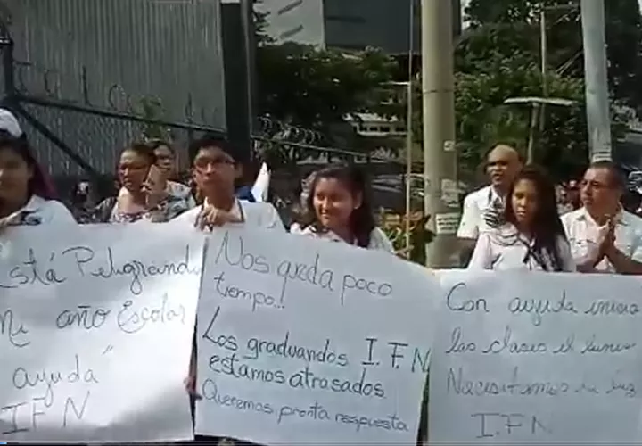 La protesta fue encabezada por los estudiantes graduandos, quienes solicitan respuestas por parte de las administración del colegio y del Ministerio de Educación con respeto a este problema.