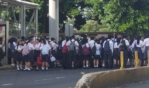 Un grupo de estudiantes del Colegio  José Remón Cantera salió a protestar esta mañana en la Vía Israel, justo frente a las instalaciones del plantel, generando afectaciones en el tráfico vehicular.