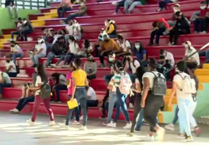 Panamá- Estudiantes que iniciaron el programa de recuperación académica en el Instituto Rubiano, distrito de San Miguelito, debne usar de forma obligatoria mascarillas y caretas faciales para recibir las clases.