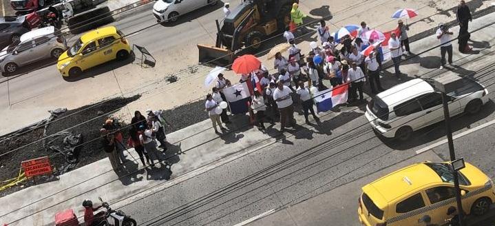 Funcionarios del Servicio Nacional de Migración que fueron destituidos hace algunas semanas protestan hoy, miércoles, en la parte exterior de la institución, ubicada en la avenida Tumba Muerto.