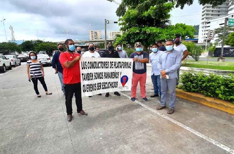 Con pancartas y coreando consignas, los conductores de plataformas digitales protestaron en la Cinta Costera para exigir mejoras al proyecto de ley que regula empresas que ofrecen el servicio.