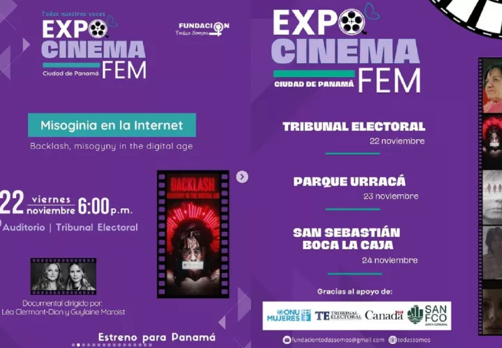 La inauguración de la Expo CinemaFEM en el Auditorio del Tribunal Electoral el 22 de noviembre, con el estreno para Panamá del Documental: Backlash, Misogyny in the Digital Age a las 6pm.