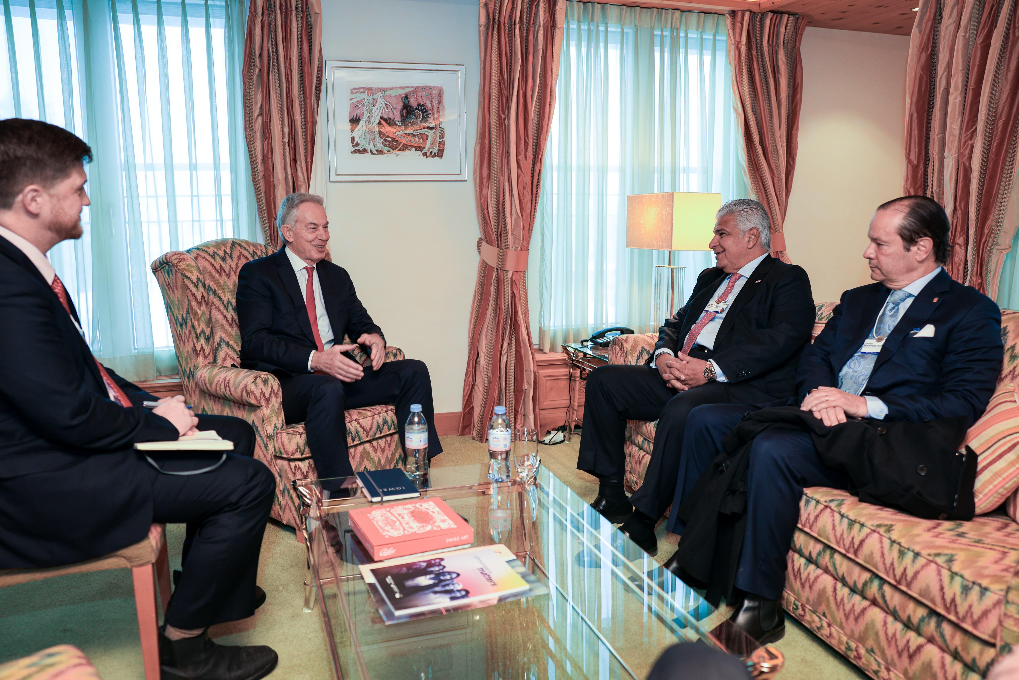 Con la finalidad de conocer los planes del Gobierno de Panamá, Tony Blair, ex primer ministro británico y actual fundador y presidente de la fundación y del Instituto Tony Blair para el Cambio Global bilateral, se reunió este jueves con el presidente José Raúl Mulino y con sus ministros de Estado, en Davos-Kluster, donde se lleva a cabo el Foro Económico Mundial 2025.