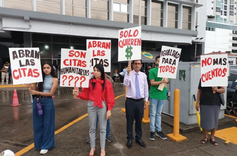 Los manifestantes piden una explicación del porqué no abren de manera expedita la página de esta institución provocando una gran confusión y una posible activación de personas inescrupulosas, aprovechadores y oportunistas que le están solicitando a los extranjeros hasta $1,500 para lograr la cita en 24 horas.