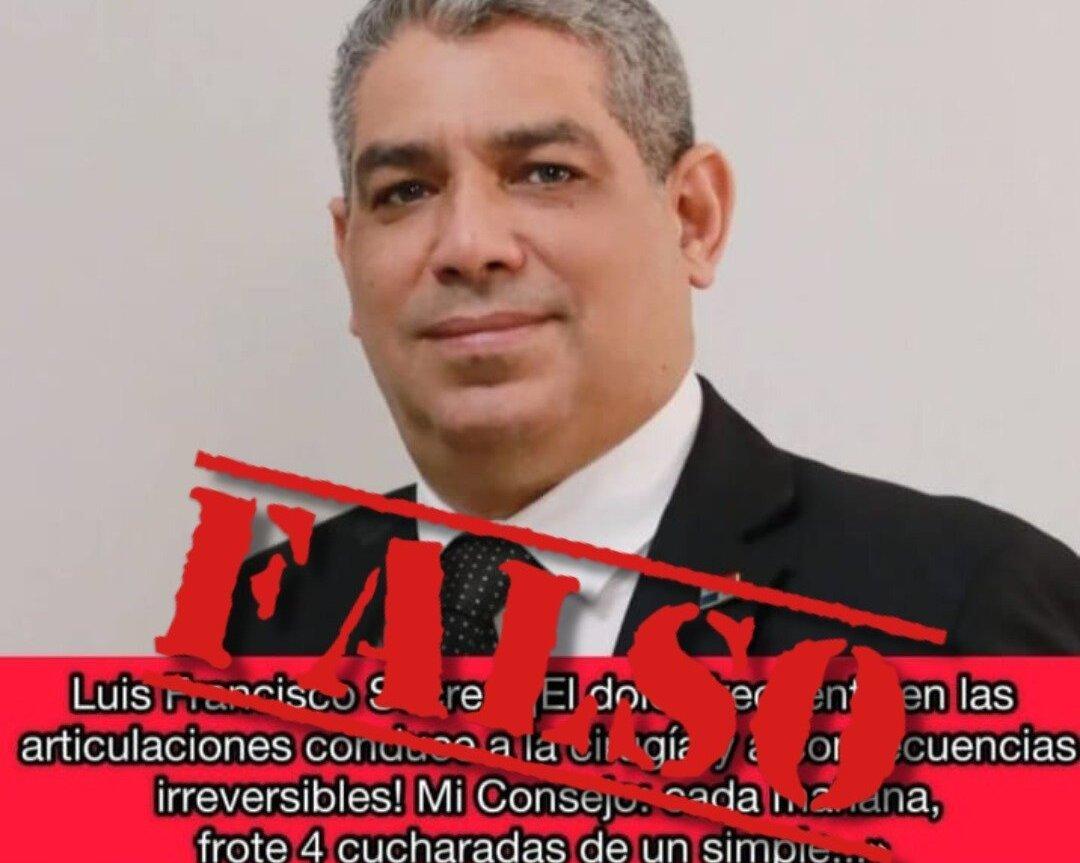 ¡ Ojo! La imagen del ministro de Salud, Luis Francisco Sucre, se está utilizando falsamente para la comercialización de un medicamento, a través de las redes sociales.