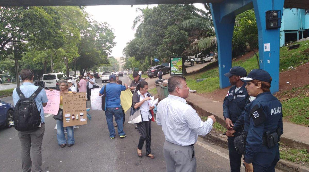 Los afectados en la ciudad capital están protestando en la aceras de la vía Transístmica, a la altura del complejo hospitalario de la Caja de Seguro Social.