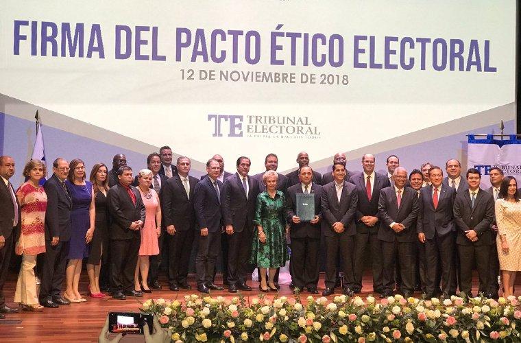 Las autoridades electorales, líderes eclesiásticos, políticos, empresariales, candidatos presidenciales, así como representantes de los medios de comunicación y de la sociedad civil firmaron ayer el Pacto Ético Electoral.