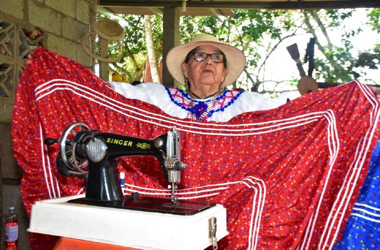 Solo cursó el primer grado de primaria, pero en cuestiones de costura es toda una profesional. Sus manos se han perfeccionado para elaborar las mejores polleras de gala y de montuna que se producen en el distrito de Ocú, provincia de Herrera, tanto es así que ha sido jurado en el festival de su pueblo.