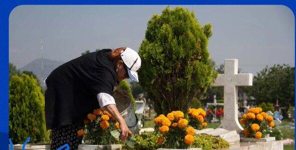 A los campos santos acuden los deudos para elevar una oración y arreglar las tumbas con flores.