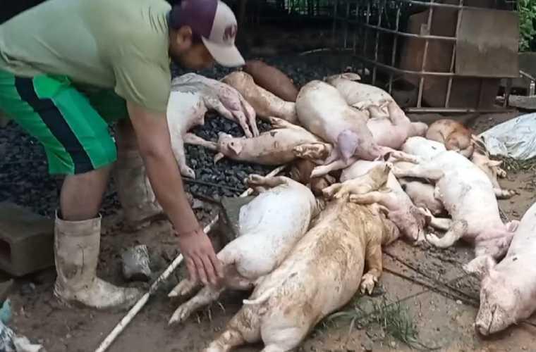 Los cerdos que murieron ahogados en Los Santos a causa de las inundaciones de esta semana, serán enterrados en un gran fosa común y posteriormente se hará un proceso de saneamiento del lugar, para evitar posibles afectaciones tanto a la población como al resto de animales vivos.