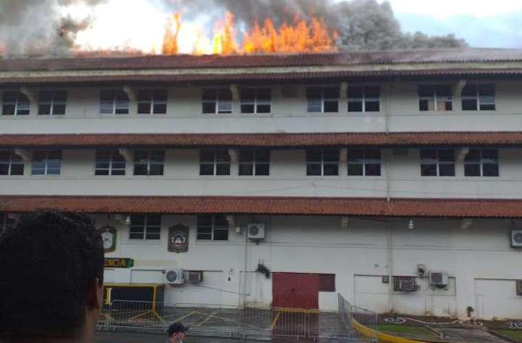 Un incendio consumió parte del edificio donde funciona la Academia de Servicio de Protección Institucional (SPI), ubicado en el sector de Corozal.