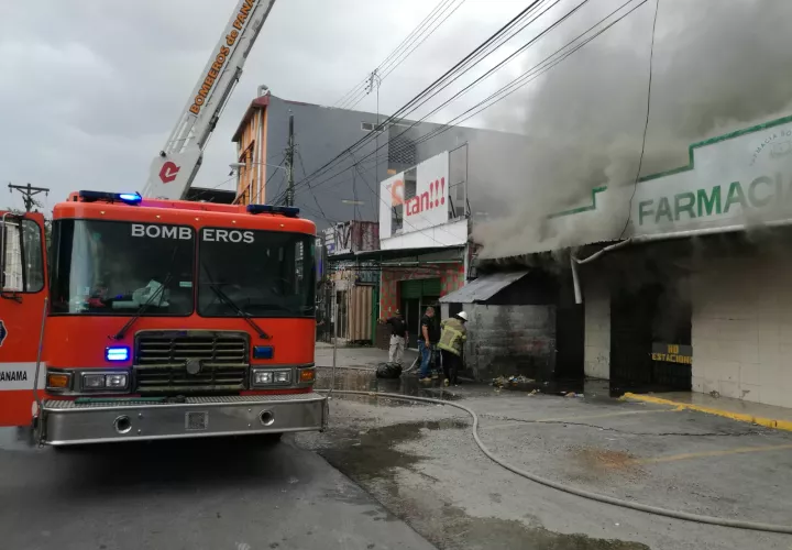 Los bomberos combaten un incendio registrado esta tarde en un local en el área de calle 13, Río Abajo.
