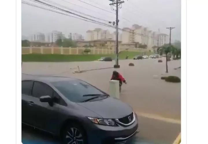 #NacionalCri Inundada la avenida José Agustín Arango frente a Plaza Carolina. Está subiendo la marea. Tráfico Panamá.