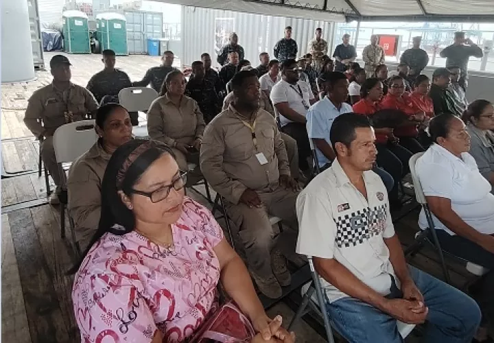 La embarcación Presidente Manuel Amador Guerrero del SENAN partió desde la terminal 2 del Duty Free de Colón 2000, transportando personal de salud, funcionarios de la Lotería Nacional, Ministerio de Desarrollo Social y otras entidades.