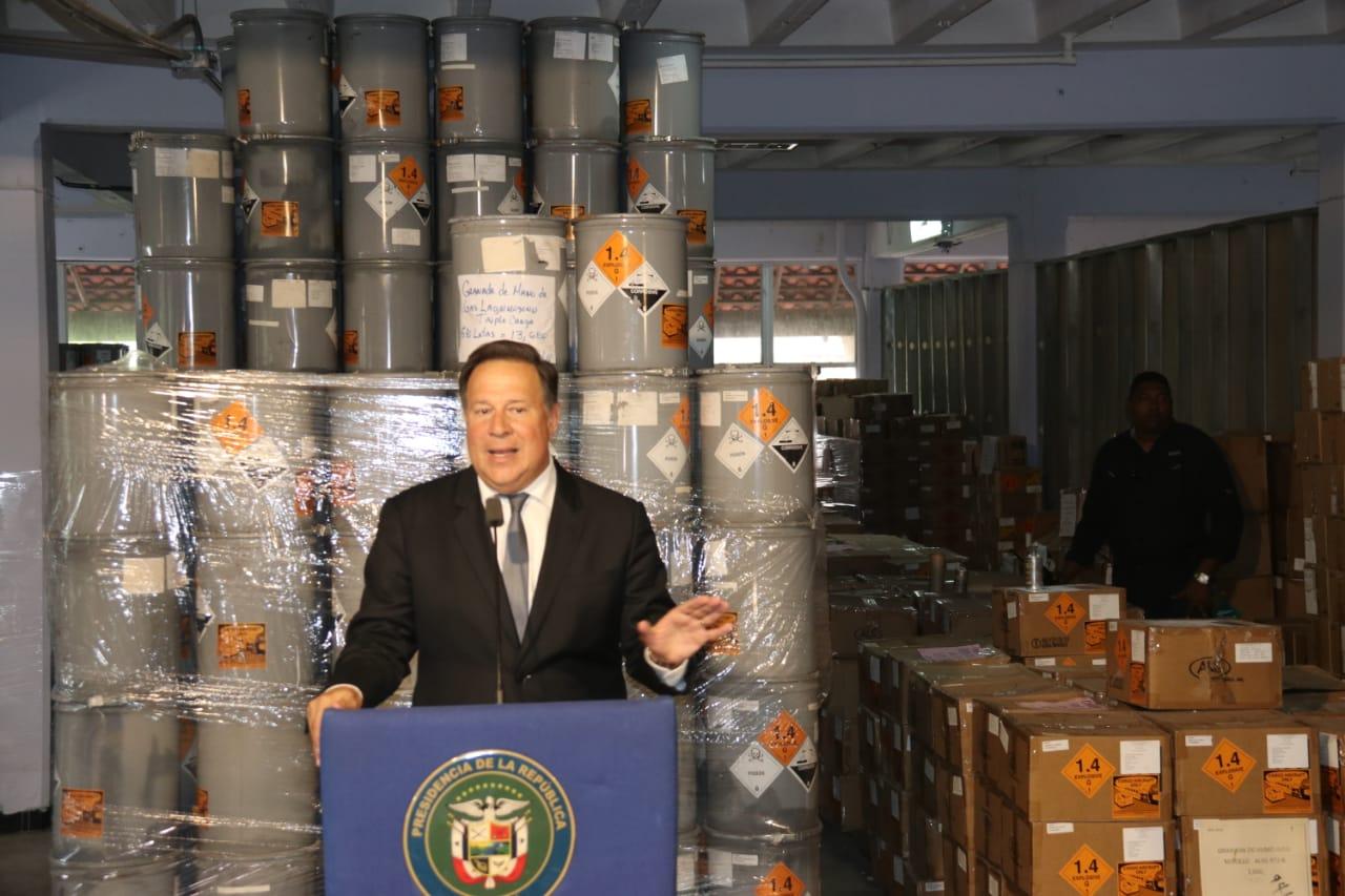El presidente de la República, Juan Carlos Varela, quien presidió el acto de descarte de los pertrechos antidisturbios vencidos, destacó que este acto obedece a una gestión gubernamental de paz y de consenso en la que la fuerza pública estuvo para proteger a la población, no para enfrentarla.
