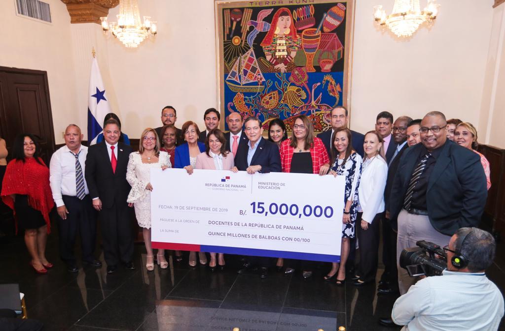 La deuda cancelada representa el primer desembolso de un total de B/.39 millones que pagará este Gobierno a los docentes del país en concepto de vigencias expiradas y con el fin de poner la casa en orden.