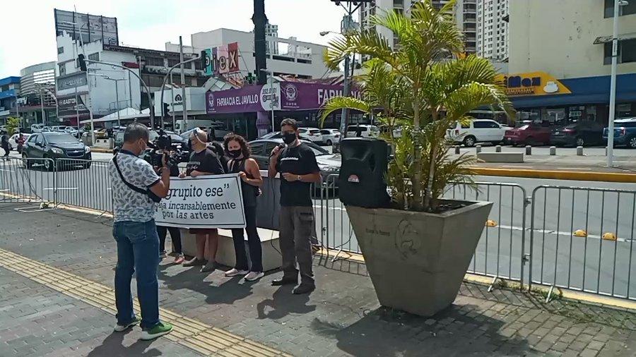 Panamá- Miembros del grupo "Artistas por Panamá" protestan hoy nuevamente frente a la sede del Ministerio de Cultura, ubicada en vía España, para exigir transparencia, el cese de los actos de corrupción y la devolución del Teatro Balboa, escenario que permanece cerrado a los diferentes gremios artístico y cultural del país.