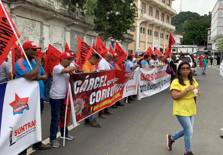 "No a las reformas" es la consigna en los predios de la Asamblea Nacional. Estudiantes universitarios y miembros del Suntracs se han tomado los alrededores del hemiciclo para manifestarse en contra de las reformas constitucionales, iniciativa que se discute en la Asamblea Nacional