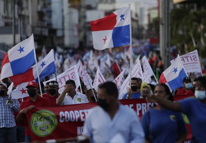 Organizaciones populares y sindicales, como el Suntracs y Conusi protestaron ayer en las calles de la capital de Panamá para exigir al presidente Laurentino Cortizo que “corrija el rumbo” para salir de la crisis económica y social que vive el país principalmente por el alza del combustible.