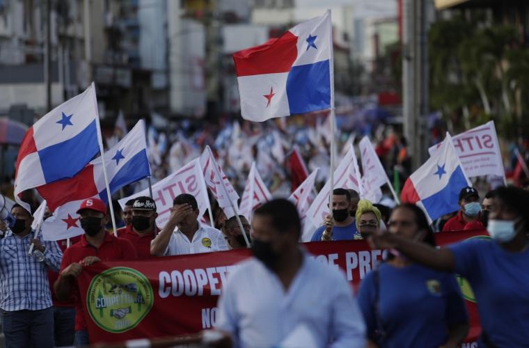 Organizaciones populares y sindicales, como el Suntracs y Conusi protestaron ayer en las calles de la capital de Panamá para exigir al presidente Laurentino Cortizo que “corrija el rumbo” para salir de la crisis económica y social que vive el país principalmente por el alza del combustible.