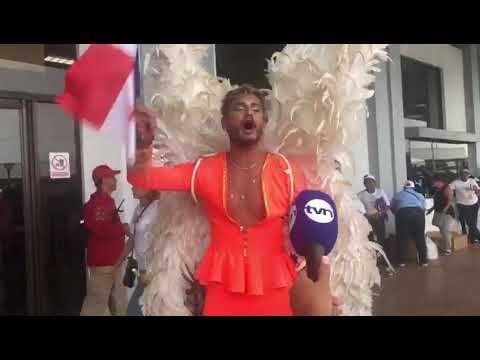 El hombre, con un llamativo vestido de una pieza con detalles de plumas, se encontraba en las afueras del Atlapa cuando comenzó a gritar.