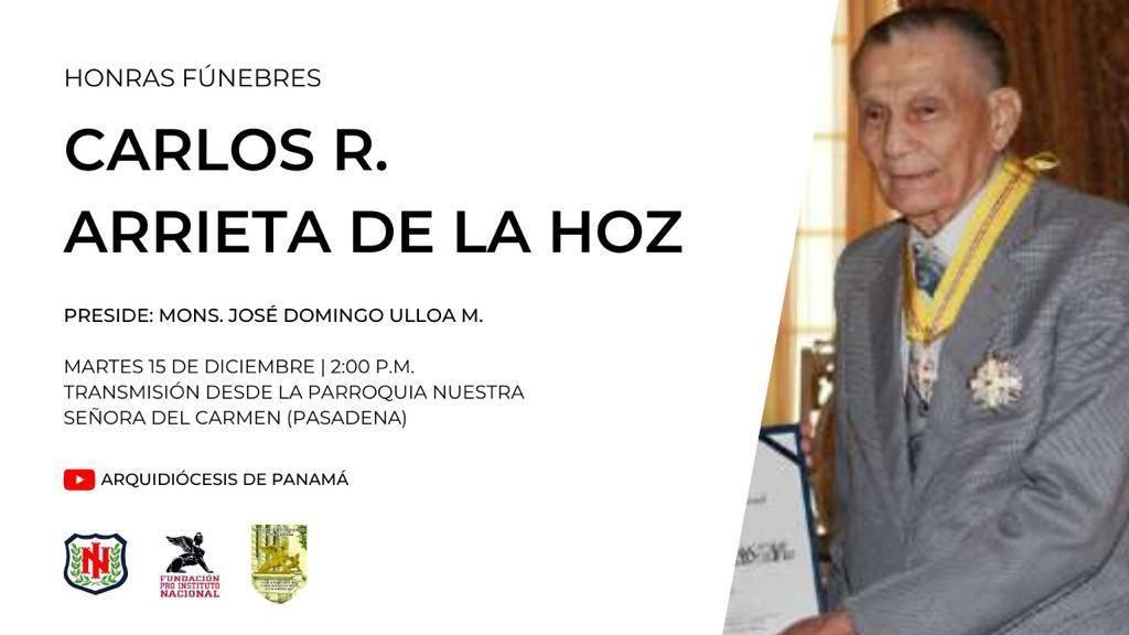 l arzobispo metropolitano, José Domingo Ulloa, presidirá el oficio religioso de despedida de este distinguido educador y nacionalista, Carlos Arrieta De La Hoz.