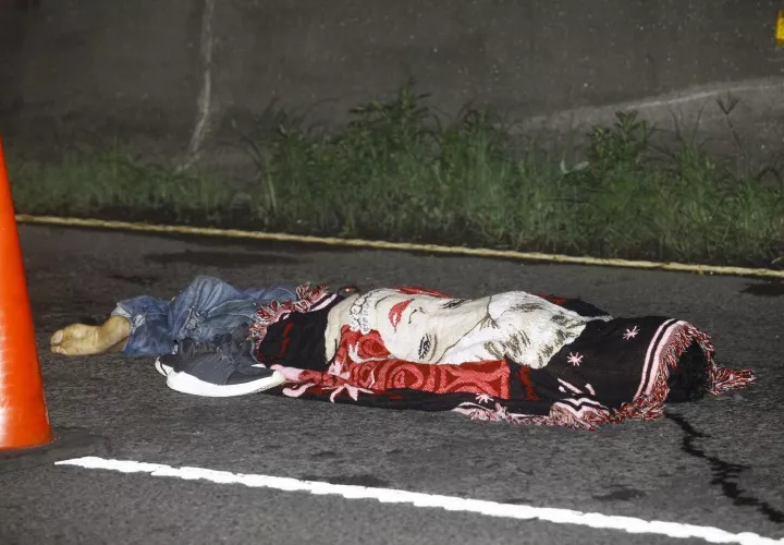 En la escena quedó la víctima sobre el pavimento, la cual fue tapada con una manta.
