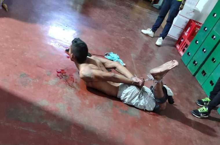 Se informó que algunos manifestantes al escuchar la voz de auxilio de la mujer, fueron hasta el mini súper y observaron lo que estaba sucediendo y procedieron a someter al sujeto amarrándolo.