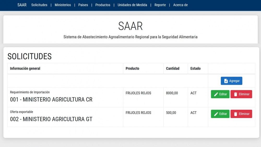 La iniciativa llamada Sistema de Abastecimiento Agroalimentario Regional para la Seguridad Alimentaria (SAAR), creado por el IICA y la Unión Europea (UE), será de uso exclusivo para ministros y secretarios de Agricultura de Panamá, Belice, Costa Rica, El Salvador, Guatemala, Honduras, México, Nicaragua y República Dominicana.