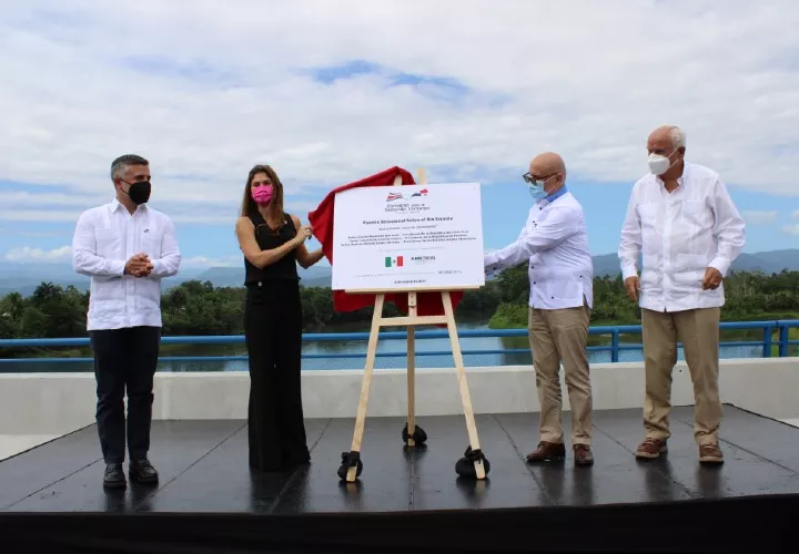 El puente binacional sobre el río Sixaola fue inaugurado ayer por los cancilleres de Costa Rica, Rodolfo Solano y Erika Mouynes, de Panamá, los Ministros de Obras Públicas, Rodolfo Méndez Mata (Costa Rica) y Rafael Sabonge (Panamá), así como Maximiliano Reyes Zúñiga, Subsecretario de Relaciones Exteriores para América Latina y el Caribe de México.