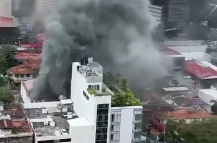 La columna de humo negro que emanaba de inmueble que era objeto de remodelaciones y mantenía una gran cantidad de materiales acumulados. Trabajadores de los locales aledaños al local evacuaron el sitio y miraban con preocupación lo que ocurría, pues justo detrás se ubica una estación de expendio de combustible.