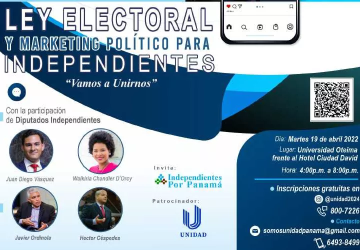 Mientras que el abogado Javier Ordinola, especialista en materia electoral, disertará sobre la “Ley electoral y los candidatos independientes”, y la docente universitaria y ex presidenta del Foro Nacional de Mujeres Políticas de Panamá (FONAMUPP), Jaqueline Hurtado Payne, expondrá sobre “La mujer como candidata independiente”.