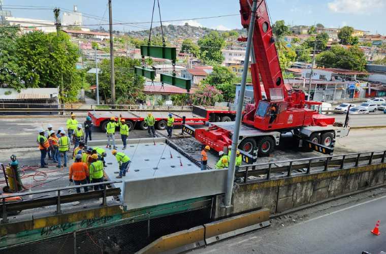 En una operación llevada a cabo desde la noche del sábado hasta el amanecer del domingo, el Ministerio de Obras Públicas (MOP) instaló con éxito la primera de las 80 losas de concreto programadas para ser reemplazadas en el puente de San Miguelito.