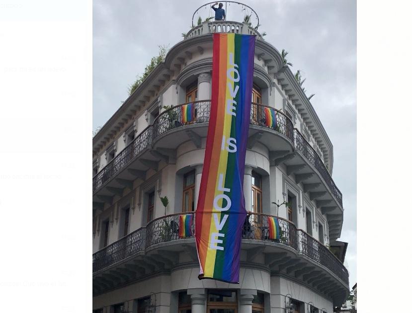 Por primera vez en el emblemático monumento histórico de Casco Antiguo, Hotel Boutique La Concordia, se instaló la gran banderola con la frase #LoveIsLove