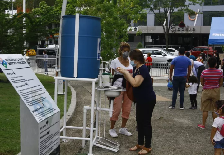 Lavamanos portátiles han sido colocados en parques de los corregimientos de Bella Vista y Don Bosco para garantizar la higiene de las familias que visitan estos sitios de recreación en medio de la pandemia del Covid-19.