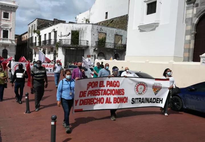 Instructores del Instituto Nacional de Formación Profesional y Capacitación para el Desarrollo Humano (Inadeh) llegaron en marcha hoy, jueves, a los predios de la Presidencia de la República, ubicada en San Felipe, para exigir el cumplimiento de una serie de derechos laborales.