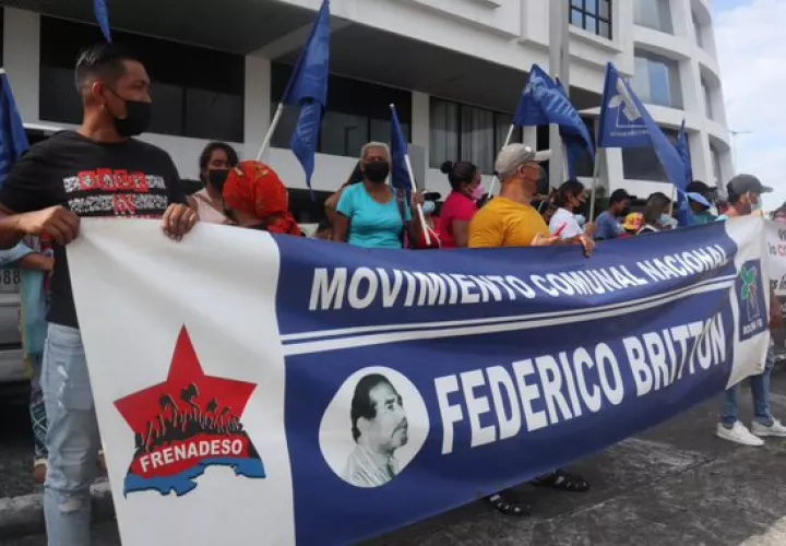Los manifestantes, que forman parte del Movimiento Comunal Nacional Federico Britton, reclaman el derecho humano a la vivienda y contra los desalojos forzosos.