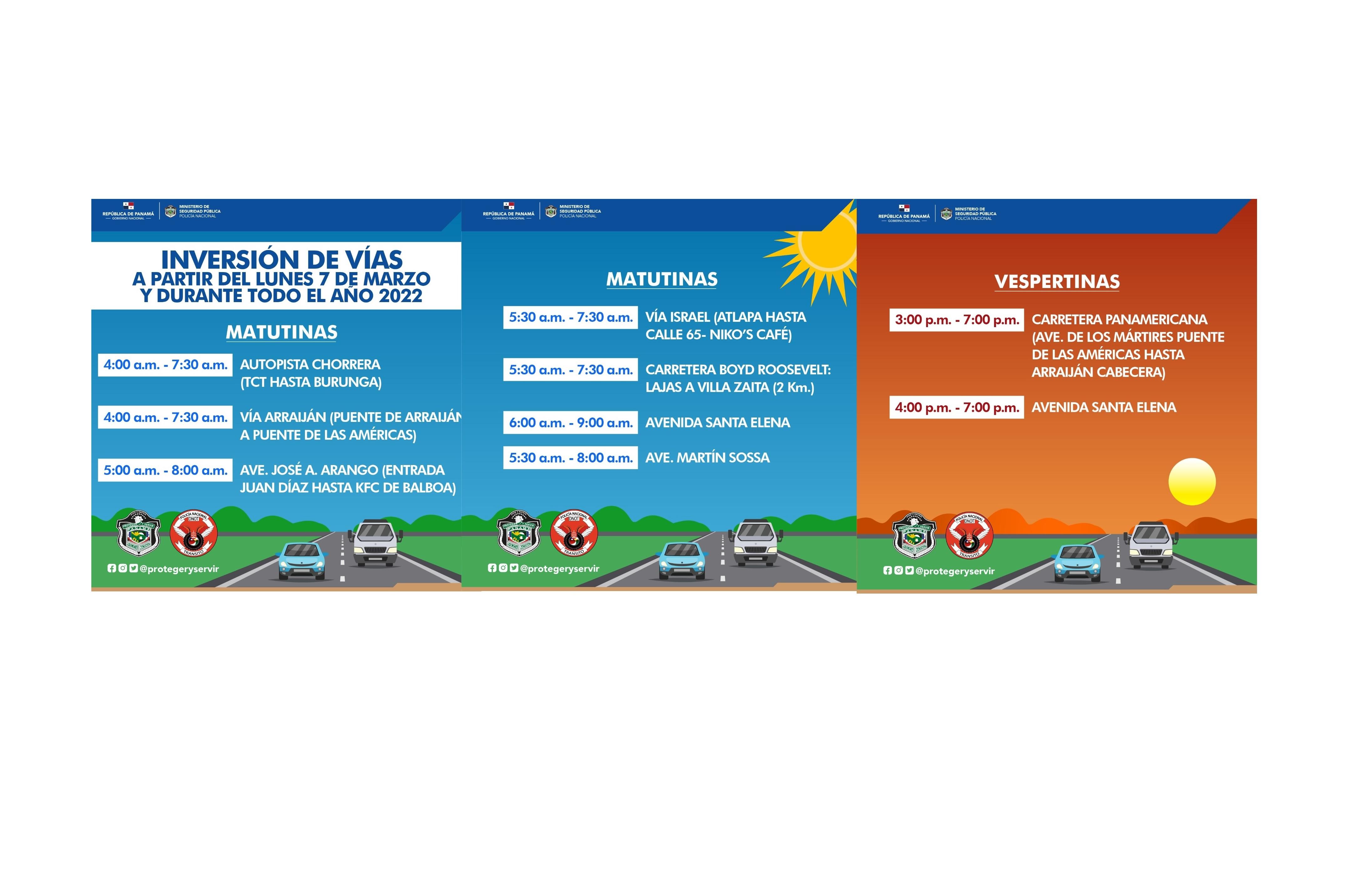 De 3:00 p.m. a 7:00 p.m. Ave. de Los Mártires- Puente de Las Américas hasta Arraiján cabecera.